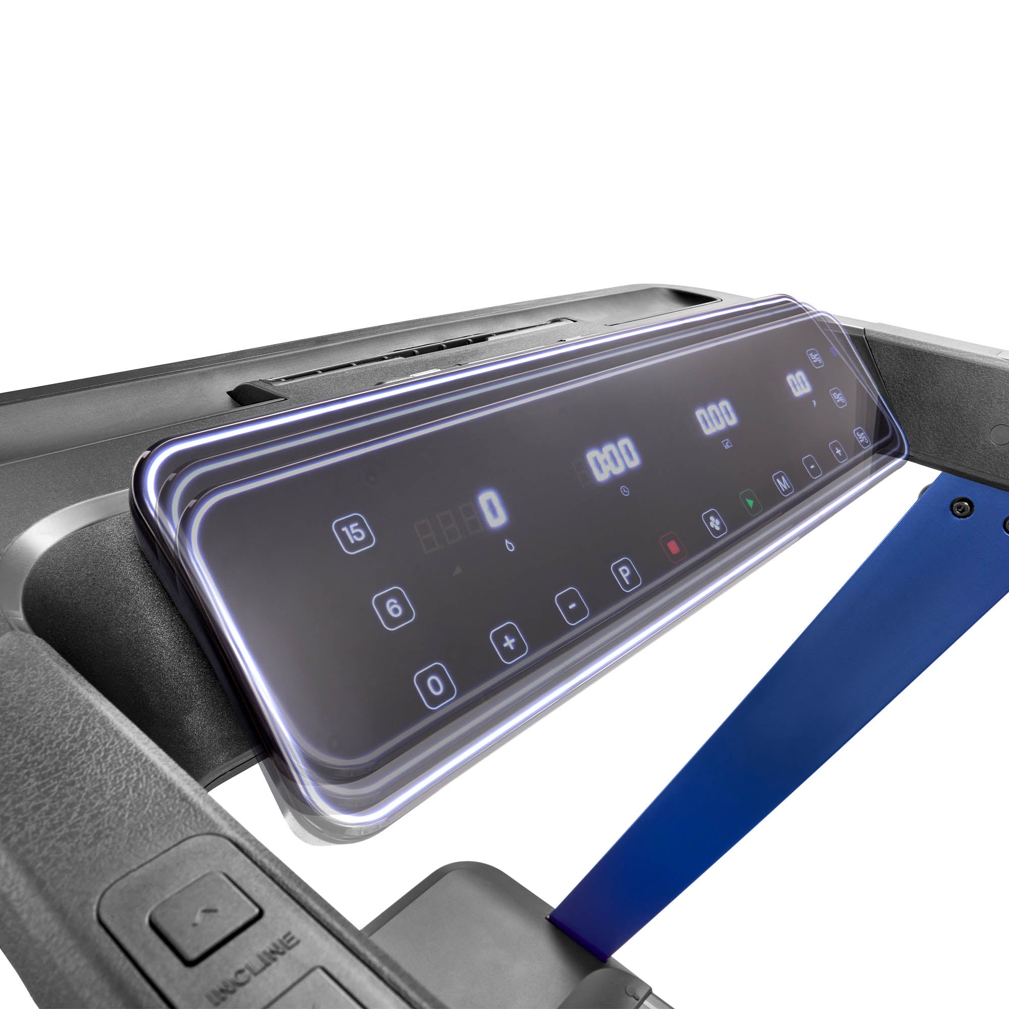 Progress is tracked via the slimline LED console with an array of live feedback metrics including speed, distance, time, calories, heart rate and more.