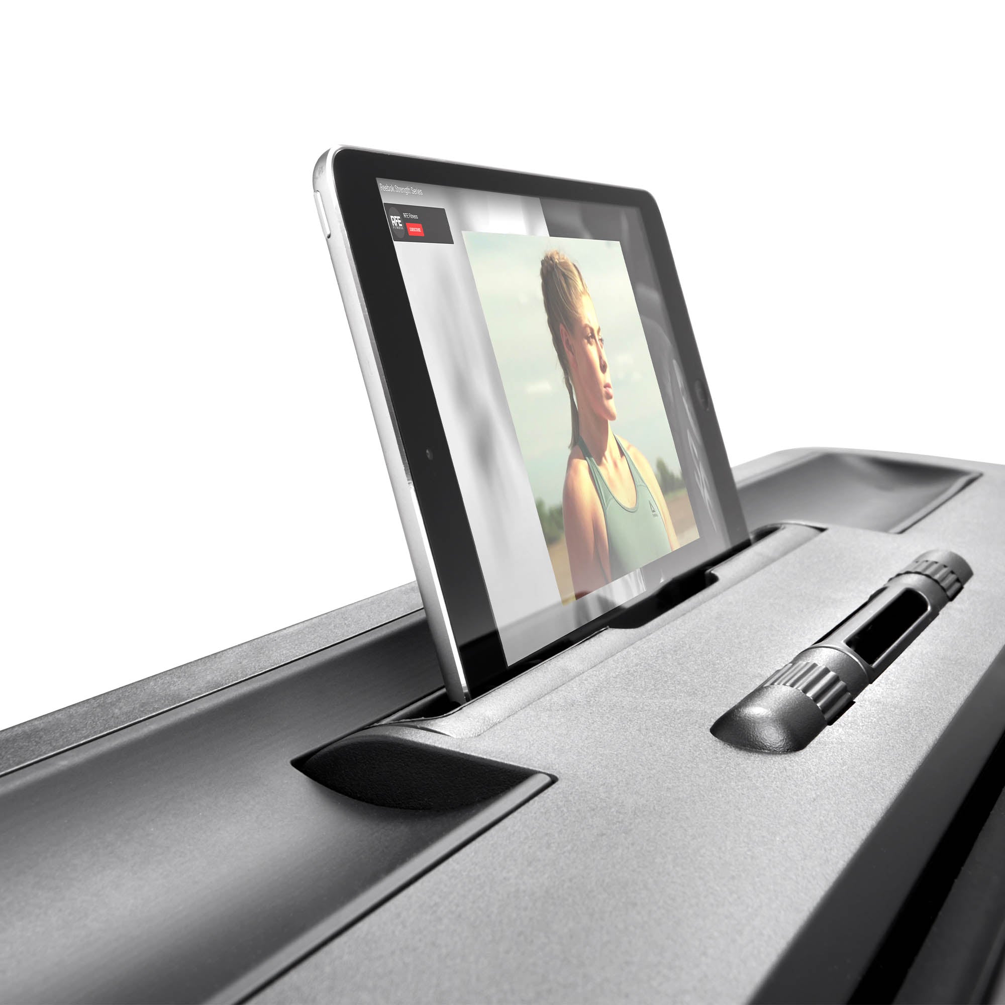 The runner has complete control of their experience, with 15 levels of power incline at the touch of a button, 24 motivational fitness programmes and 3 heart rate control programmes to choose from. This can be further enhanced by creating personal workouts and syncing the FR30z with Zwift, an immersive online running experience built around a connected global community of runners. They can also keep up the pace and stay motivated by blasting out their favourite music tracks from the integrated surround sound speakers or watch the latest TV shows and movies using the smart device media dock.